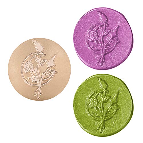 Testa Timbro Ceralacca Piante in Ottone Testa di Timbro Sigillo Ceralacca Vintage Sigillo Senza Manico Decorazioni per Biglietti Buste Fai da te Natale Matrimonio (Luna e fiori)