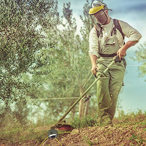 4. Informazioni sulla confezione: la confezione include 1 testa di taglio per falciatura, 4 fili per trimmer da 27 cm, 1 filo per decespugliatore da 10 m, 1 chiave e 2 rondelle