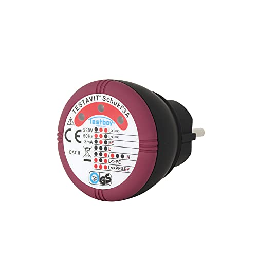 Testavit Schuki 3A Tester per prese (lampade fluorescenti, 230 V, classe di protezione 40, test sicuro, tensione alimentazione tramite dispositivo in esame), rosso/nero