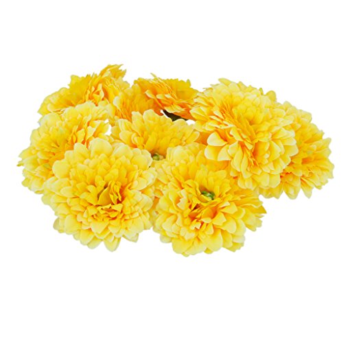 20x Teste Di Fiore Di Seta Artificiale Fiore Mamma Giardino Di Casa Arredamento Partito Giallo