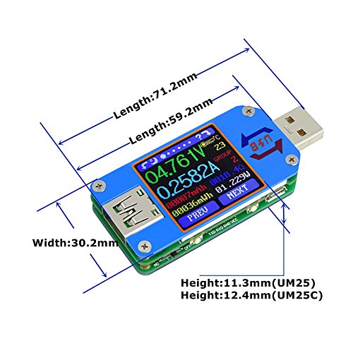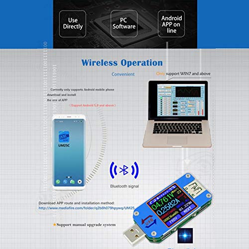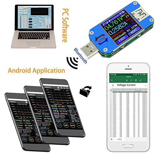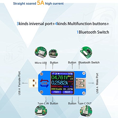 Tester di Corrente di Tensione Bluetooth USB2.0 - Multimetro Voltmetro di Interfaccia di Tipo C - Schermo LCD a Colori,Interfaccia di Misurazione di 6 Tipi - Strumento di Controllo del Gruppo di Linee