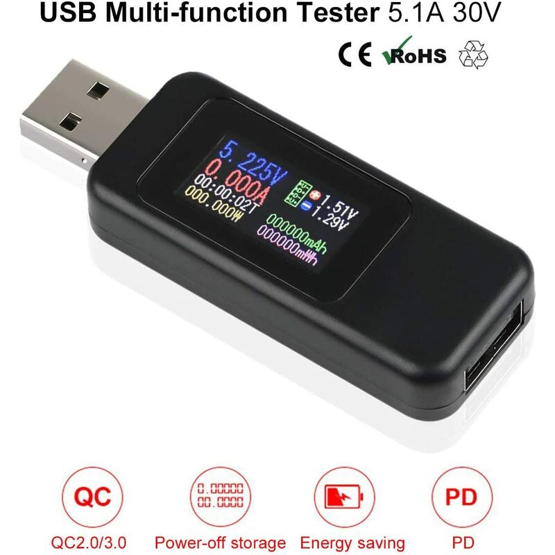 Hai utilizzato un dispositivo elettronico con USB? Li hai rilevati in tempo reale? Sono davvero sicuri? Il nostro tester USB può aiutarti a risolvere questo problema, in modo facile e veloce. Elementi di monitoraggio di base: corrente, tensione, capacità, potenza, temperatura, temporizzazione. Rileva le USB che stai utilizzando in tempo reale per evitare incidenti. Nuova funzionalità: la porta USB è completamente rinforzata, il che risolve il problema della caduta della porta USB a causa dell'inserimento e dei prelievi ripetuti, quindi puoi utilizzare con fiducia. Aggiunta funzione di avviso di alta temperatura. Quando la temperatura rilevata supera i 45 gradi, il valore della temperatura verde sull'interfaccia del display diventerà rosso e apparirà un punto esclamativo rosso per ricordare che la temperatura è anormale. Materie prime di alta qualità: 1 Spina di sicurezza, adatta a qualsiasi dispositivo elettronico con USB, adatta a una varietà di ambienti;