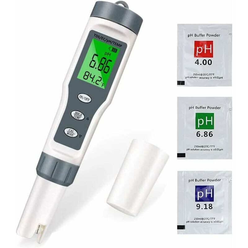 Specifiche tecniche: Misurazione del pH Intervallo: 0,00 ~ 14,00 pH Risoluzione: 0,01 pH Precisione: ±0,1 pH Misurazione TDS/misurazione EC Intervallo: 0~19999uS/cm Risoluzione: 1μS/cm Precisione: ± 2 % FS Misurazione della temperatura Intervallo: 0~60°C (32~122°F) Risoluzione: 0,1°C (0,2°F)< /p> Precisione: ±0,5°C (±2°F) Tipo di batteria: 3 x 1,5 V (LR44) Compensazione automatica della temperatura: 0~60℃ Temperatura ambiente: 0~60℃ 【Utilizzo conveniente】: il ph meter 5 secondi conosce la qualità dell'acqua, la precisione, più velocemente. Questo set combinato di temperatura TDS PH EC. Inoltre, ha il miglior prezzo, una qualità affidabile, tutto ciò lo rende il tuo primo test di qualità dell'acqua. 【Tester ad alta precisione】: pHmetro: l'intervallo di misurazione è compreso tra 0,00 e 14,00 pH;