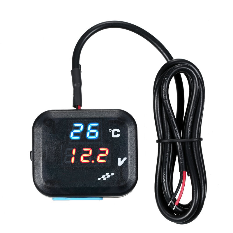 Caratteristiche: Misurazione della tensione CC, far funzionare il veicolo a tensione normale, prolungare la durata del veicolo. Schermo LCD ad alta definizione, visualizza accuratamente i dati di temperatura. Più intuitivo, rapido e conveniente. Quando la temperatura supera i 99 gradi Celsius, il misuratore lampeggerà per avvisare l'utente. Produzione professionale e design semplice, impermeabile e sicuro da esporre alla luce solare. Misuratore di temperatura dell'acqua universale adatto per la maggior parte delle motociclette, corse, scooter ecc. Specifica: Condizione: 100% nuovo Materiale: ABS Colore nero Colore retroilluminazione: blu / rosso Intervallo di visualizzazione del termometro: 0-99 ℃ Intervallo di visualizzazione voltmetro: DC8.0-30.0V Usa tensione: DC12V Intervallo di temperatura operativa: da -10 ℃ a + 60 ℃ Intervallo di avviso di temperatura: se la temperatura raggiunge 99 gradi Celsius o superiore, lo schermo lampeggia di avviso Prova di resistenza all'umidità e