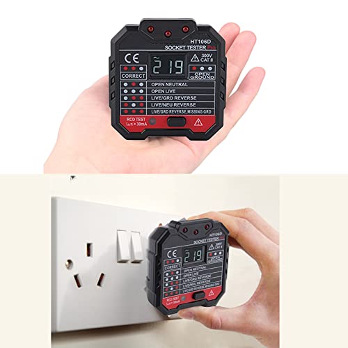 Tester per Prese Elettriche, HT106D Tester per Circuiti Elettrici, Multifunzione Strumento per La Verifica Dei Guasti di Rete per Scuole(EU HT106D)