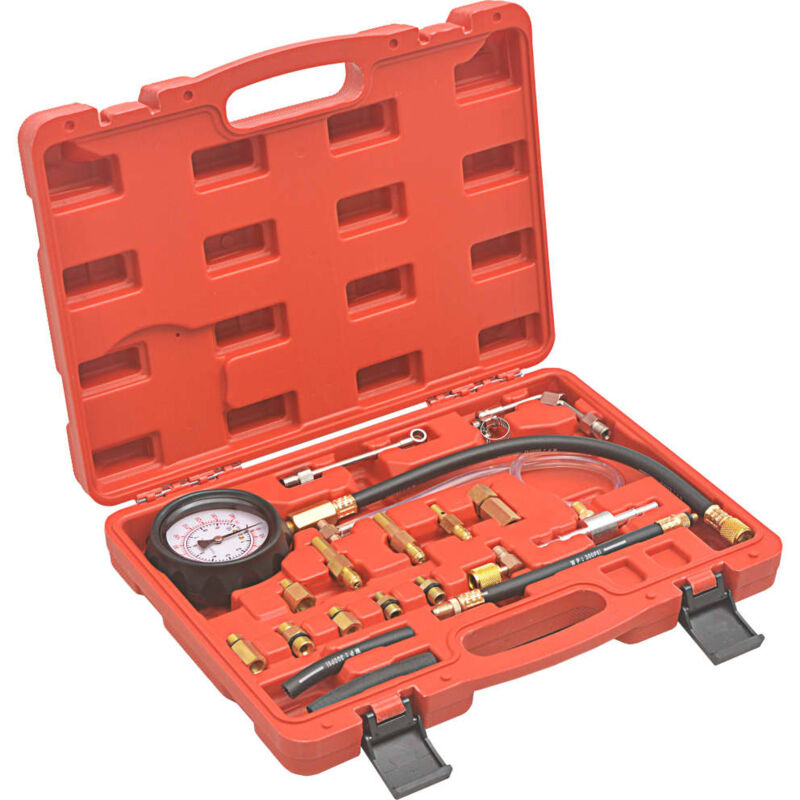 Descrizione: Il nostro kit professionale per testare la pressione della pompa di iniezione del carburante comprende adattatori, tubi, morsetti e altri raccordi ed è adatto ai sistemi di iniezione elettronica del carburante della maggior parte delle auto e dei camion in tutto il mondo. Ha un display a doppia scala da 0-140 PSI o 0-10 bar, per un accurato controllo della pressione dell'olio. Questo set comprende un kit completo di adattatori e accessori per i moderni sistemi di iniezione. I componenti sono dotati di un sistema di rilascio rapido e di una valvola di sicurezza per impedire lo scarico accidentale del carburante sotto pressione. Realizzato in materiale di qualità, questo set di strumenti è estremamente resistente. Inoltre, il kit viene consegnato in una custodia soffiata per un facile stoccaggio e trasporto. Specificazioni: Colore della custodia: Rosso Materiale: Rame, gomma, plastica Manometro: 140 PSI, 0-10 bar Progettato per controllare facilmente la pressione del