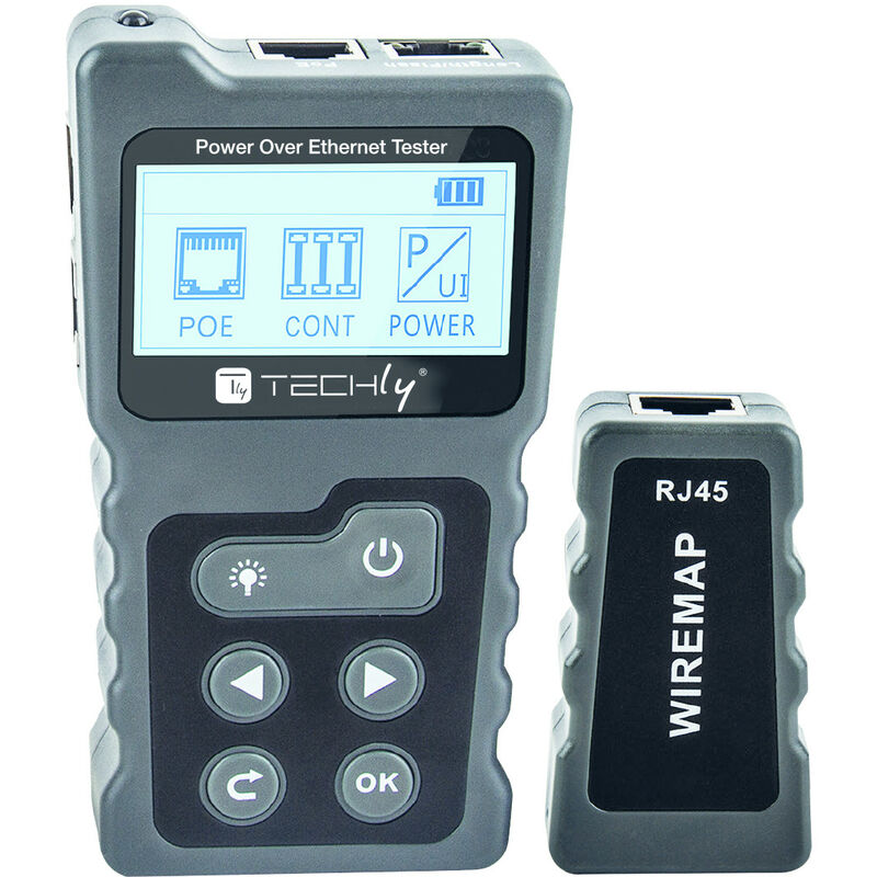 · Tester professionale PoE RJ45 · Funzioni principali: rilevamento di tensione PoE, corrente, alimentazione, standard PSE, modalità di alimentazione, verifica cavi RJ45 · Tipo di cavo: Cat.5, Cat.6 · Adatto a cavi UTP e STP · Massima gamma di test: 600 m · Alimentazione: 3xAAA 1,5V (non incluse) · Adatto per testare le informazioni del dispositivo PoE standard, ad esempio standard, tensione di alimentazione, polarità dell alimentazione e modalità · Identifica la tensione di alimentazione, la polarità dell alimentazione e la modalità dei dispositivi PoE non standard · Prova lo stato aperto, corto, incrociato del cavo di rete · Testa la corrente, la tensione e la potenza consumate dagli apparecchi CC · Con funzione di test loop-back dello switch Specifiche tecniche · Tipo di cavo: Cat.5, Cat.6 · Adatto a cavi UTP e STP · Massima gamma di test: 600 m · Gamma di test di tensione: DC 0-60 V · Intervallo di prova corrente: 0-3 A · Gamma di test di potenza: 0-180 W · Protezione della