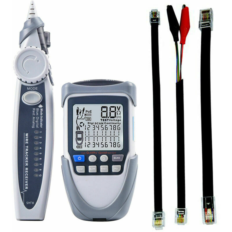 Questo tester per cavi di rete portatile è uno strumento pratico per tutti i tipi di linee di comunicazione e per il personale tecnico di manutenzione. Ti aiuta a trovare in modo rapido ed efficiente il cavo di cui hai bisogno tra un gran numero di cavi. Questo prodotto può essere ampiamente utilizzato nei sistemi telefonici, nelle reti di computer, nelle reti video, nell'ingegneria delle comunicazioni ottiche e in altre occasioni di linee metalliche. Caratteristiche: Adotta uno schermo LCD intuitivo per visualizzare i dati di più chiaramente e con tre modalità per passare liberamente: modalità POE, modalità digitale e modalità analogica. Funzione di test POE: questo strumento può essere utilizzato per testare dispositivi POE sia standard che non standard, può anche testare POE tensione, polarità degli alimentatori e modalità di alimentazione Funzione di test di tensione: è possibile fare clic su "V" per accedere alla funzione di test di tensione, che può misurare la tensione della