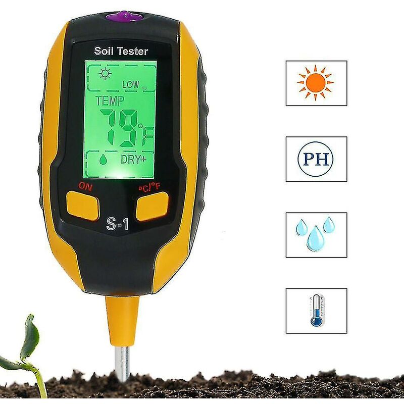 Specifiche Materiale: metallo + plastica Dimensioni: 317mm Dimensione quadranteca. 95 * 57 * 27 mm Sonda: 205 mm Batterie: AAA 4 celle (non incluse) Lista di imballaggio: Tester del suolo da 1 pezzo Caratteristiche 1. Funzione 4 in 1 - Con il nostro Tester del suolo 4 in 1, puoi misurare l'umidità del suolo, il pH, la temperatura e l'intensità della luce solare delle piante, aiutandoti a prenderti cura di fiori e piante. 2. Preciso e duraturo - La tecnologia di rilevamento aggiornata nel 2021 ha notevolmente migliorato la velocità e la precisione di rilevamento. Ti aiuta a specializzarti nella semina e rifiuta di essere un killer di piante. 3. Ampio display LCD e retroilluminazione - L'ampio display può facilmente visualizzare varie letture e la retroilluminazione verde consente di leggere i parametri in condizioni di oscurità. 4. Facile da usare e trasportare - Dimensioni ridotte, facile da usare e trasportare. Basta inserire la sonda a circa 10 cm nel terreno e