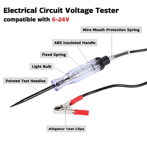 Tester di Tensione,Tester per Fusibili per Auto Auto 6V 12V 24V Dc Tester per Circuiti di Tensione per Camion per Auto Test per Auto Voltmet Sonda Lunga Penna Lampadina per il Controllo di Circuiti