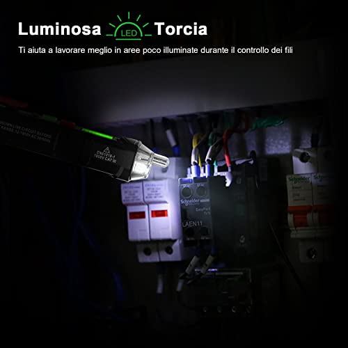 Tester di Tensione Senza Contatto, KAIWEETS Cercafase, Rilevatore di Tensione a Doppia Sensibilità 12V/48V-1000V, Display LCD, Test Filo Fase/Neutro, Torcia, Allarme Acustico