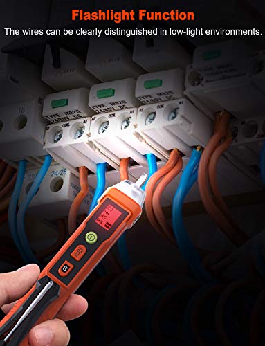 【DISEÑO SIN CONTACTO】 El probador de voltaje tiene alta seguridad, su detección de voltaje sin contacto y su cuerpo de bolígrafo no metálico aseguran que la electricidad no lo sorprenda.