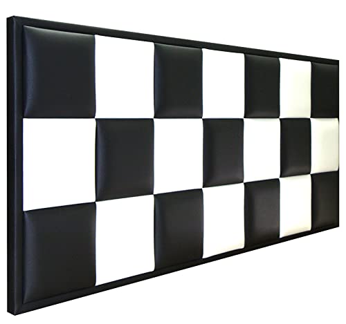 Testiera letto Eva | Testata letto moderno e originale | Testiera per letto matrimoniale imbottita in similpelle | Testiera del letto trapuntata da muro | Design scacchi | 145x65 Colore Rosso