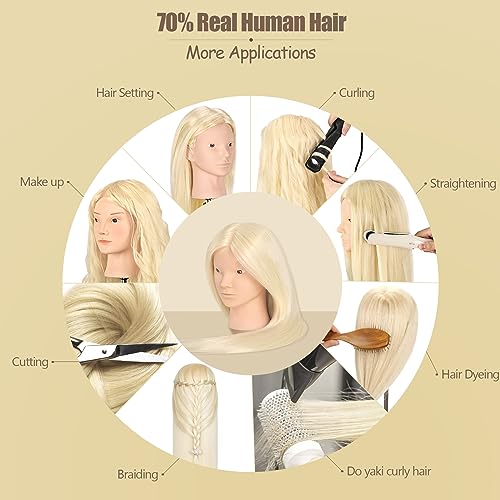 Testina Parrucchiere Capelli, TopDirect 66cm/26" 70% Veri Capelli Testa per Parrucchieri Testa per Acconciature Manichino Cosmetologia Formazione con Morsetto + 8pcs Extension Capelli Clip