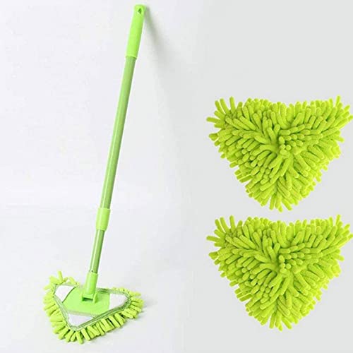 Testine per mocio di ricambio per mocio triangolare 3 pezzi/set Mocio triangolare multiuso Asta di ferro rotante triangolare a 180° Mini mocio in ciniglia telescopico per parete finestra