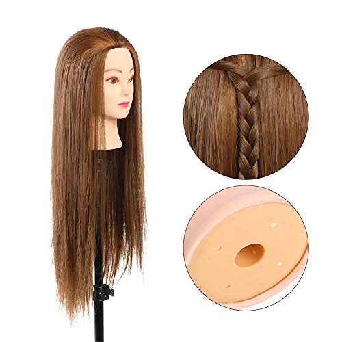 Testine per parrucchiere, Testa manichino marrone dorato Testina per parrucchiere Manichino Cosmetologia Estensioni per ciglia Testa bambola Modello allenamento per capelli in fibra sintetica