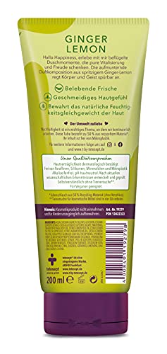 By tetesept Aroma doccia "Hallo Happiness - Gel doccia con profumo rinfrescante di Ginger & Lemon - Gel doccia vegano - 1 X 200 ML