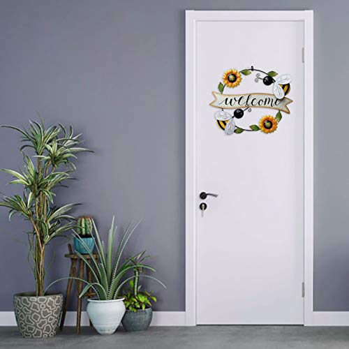 TETHYSUN - Targa di benvenuto con girasole e api, per porta di ingresso, vintage, in metallo, decorazione autunnale da appendere, decorazione autunnale per esterni