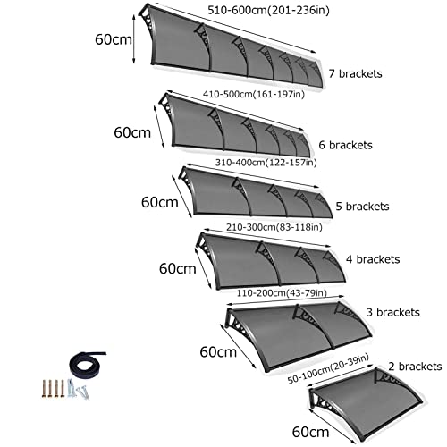 Tettoia Esterno Policarbonato Trasparente,Tettoia Antipioggia Pensilina Tettoia per Porta,Tenda da Veranda Pensilina,Pensilina Tettoia per Porta Balcone Impermeabile (60x70cm/24inX28in,60cm)