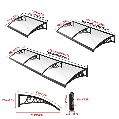 Tettoia Pensilina trasparente,Pensilina Ingresso per veranda,Pensilina per Copertura in policarbonato,Pensilina da esterno,Impermeabile e Anti-UV,con staffa nera (80x120cm/32"x47")