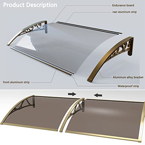 Tettoia per Porta,Pensilina Ingresso,Pensilina per Copertura,Tettoia Pensilina,Pensilina da Esterno,Pioggia UV Neve Protezione,con Staffa in Lega di Alluminio,Marrone (60x130cm/24"x51")