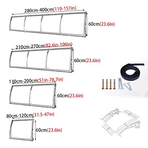 Tettoia Trasparente Per Esterno,Tettoia per Porta di Casa Pensilina Tettuccio Oorta d'ingresso in Policarbonato Trasparente per Porta o Finestra per Esterno (60x90cm/23.6x35.4in,Noir)