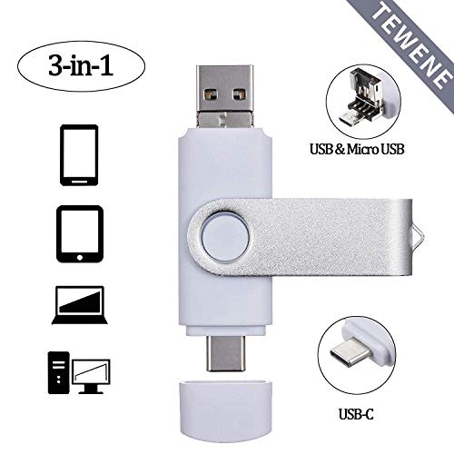 Tewene, chiavetta USB 3 in 1 da 32 GB, con connettore di tipo C, Flash Drive OTG/USB 3.0 per cellulari Android, MacBook e computer bianco 32 GB