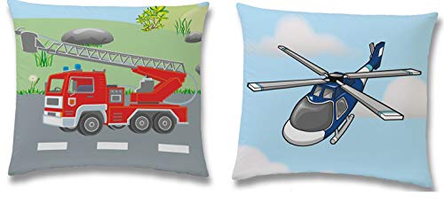 Motivo: polizia, vigili del fuoco e ambulanza, set di biancheria da letto double-face con veicolo dei vigili del fuoco, auto della polizia, elicottero della polizia e ambulanza