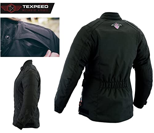Texpeed Giacca moto da donna con protezioni - Cappotto invernale lungo da donna impermeabile in tessuto Cordura con armatura moto CE (EN 1621-1) XS