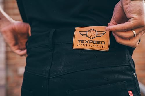 Texpeed Pantaloni da moto da Uomo - Pantaloni Biker Cargo in Denim con Protezione dell'armatura (EN 1621-1) - vestibilità Dritta Nero - 10XL Girovita/Lunga Gamba