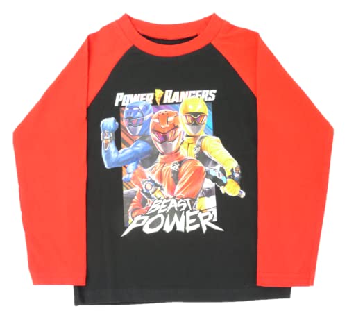Pigiama nero con maniche rosse a contrasto e fascia da collo. Stampa multipla Power Rangers con il rosso, blu e giallo Beast Morphers "Beast Power"