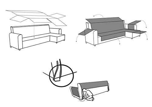 Textilhome - Copridivano Salvadivano Chaise Longe MALU - Color Beige -BRACCIOLO SINISTRA - Protezione per divani imbottiti - Dimencione 240cm -(VISTO DI FRONTE).