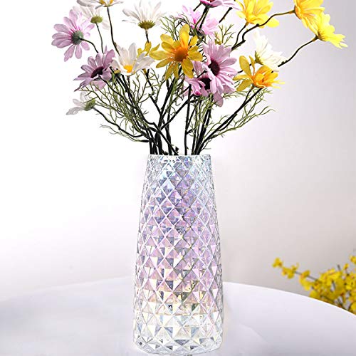 TEYU Vaso da fiori in vetro con motivo anananas/linee verticali, vaso da fiori moderno decorativo per decorazione ufficio, casa, matrimoni, feste (colorato)