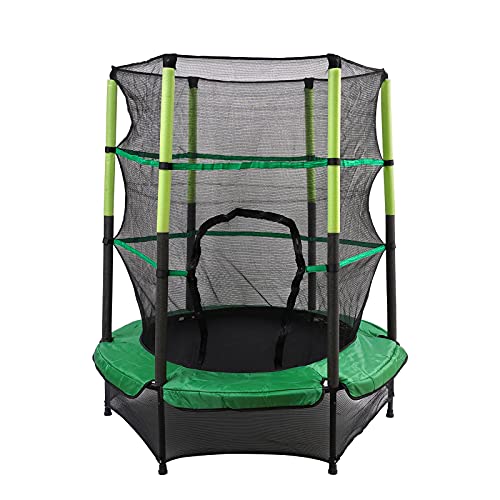 TFCFL 4.5FT Tappeto Elastico con Rete di Protezione,Verde/Rosa Trampolini Elastici da Giardino,Salterello Bambini Esterno per Regalo di Natale,Compleanno,Diametro 140 cm,Carico Dinamico 50 kg (Verde)