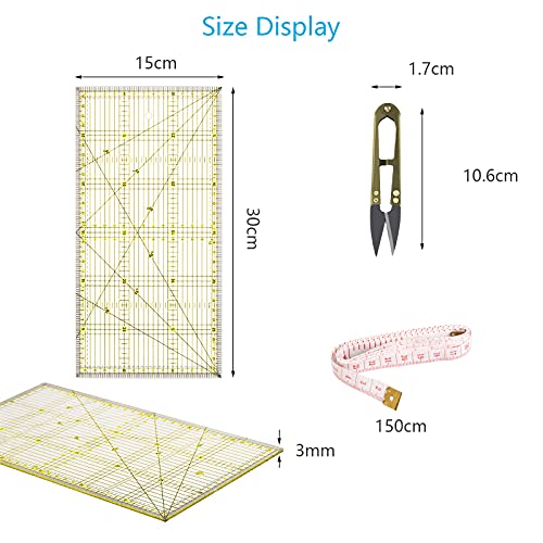 Kit righello da cucito: include righello per trapuntatura 30x15 cm, forbici a forma di U, metro a nastro da 150 cm. Un set di strumenti semplifica il tuo lavoro di cucito.