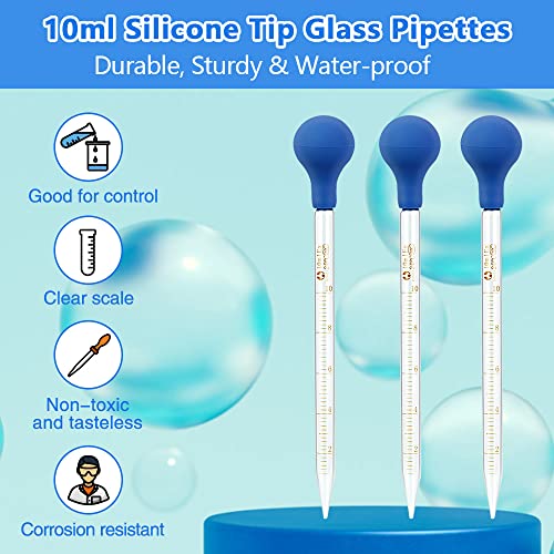 【Resistente alla corrosione, spesso e durevole】 Ogni pipetta è realizzata in vetro borosilicato resistente alla corrosione e silicone, che è spesso e durevole, sicuro e non tossico, morbido e flessibile. Le pipette prevengono la contaminazione incrociata dei liquidi, che è fondamentale per gli esperimenti. Le nostre pipette sono precise e disponibili in quantità sufficienti per soddisfare le vostre esigenze.