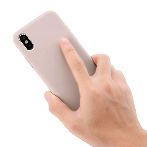 THBY Cover iPhone XS, Custodia Antiurto Gomma Gel Silicone Liquido con Fodera Tessile Microfibra Morbida Custodia Silicone iPhone XS Cover per Apple iPhone XS. (XS 5.8'', Rosa Sabbia)