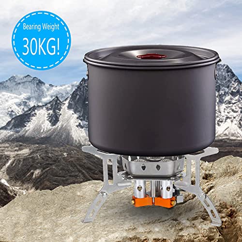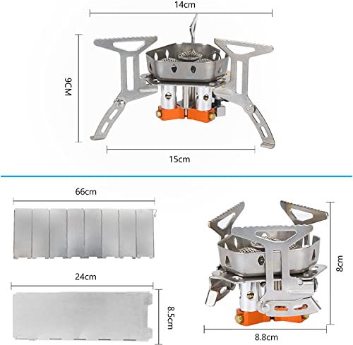 The7boX Fornello a Gas da Campeggio Antivento 5000W, Fornello Portatile Pieghevole a Zaino con Accensione Piezoelettrica e Convertitore Dotato di Parabrezza per Cucinare All'Aperto EscursionismoPicnic