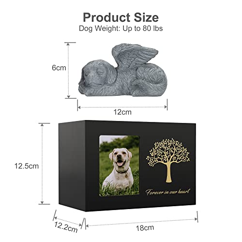 The7boX Urne Ceneri Cane Urne Per Cani Urna Funeraria Legno Nero Urna per Ceneri Cane Viene Fornito con un Angelo Cane e un Sacchetto di Cenere