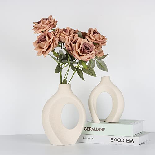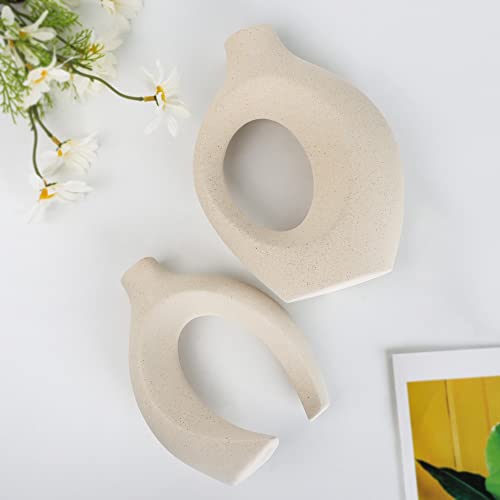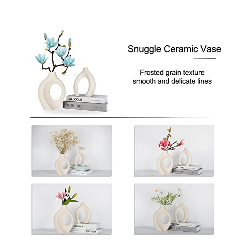 The7boX Set di 2 vasi in ceramica classici Biscuit Modern Farmhouse Home Decor Set floreale bianco Scaffale mensola centrale Combinazione di vasi Set vasi minimalisti