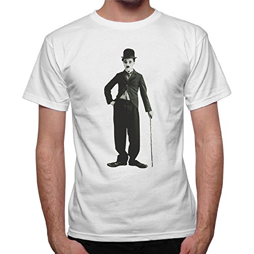 Thedifferent T-Shirt Uomo Charlie Chaplin Sagoma Bastone Film Muti- Bianco