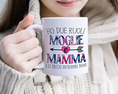 Thedifferent Tazza Colazione Latte thè Mug Relax con frase - Ho due ruoli Moglie e Mamma e li faccio entrambi bene - idea regalo festa del Mamma Madre Nonna compleanno natale