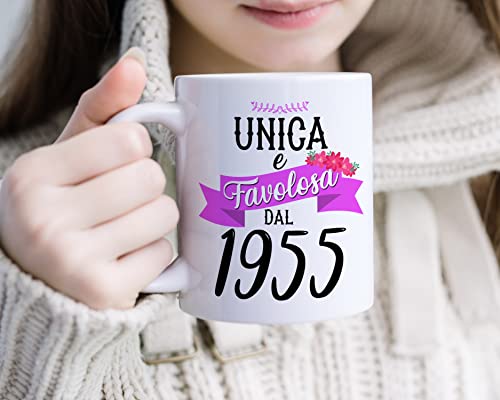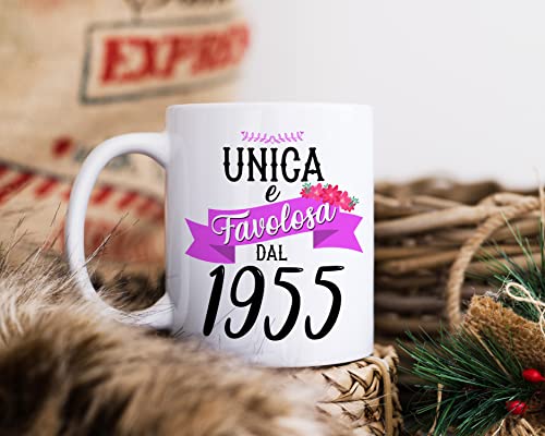 Thedifferent Tazza Colazione Latte thè Mug Relax con grafica - Unica e favolosa dal 1955 anno di nascita - idea regalo Compleanno Natale Mamma Amica Sorella Nonna Zia