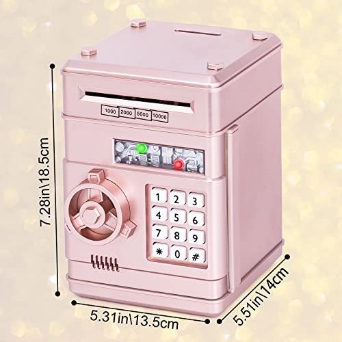 Thedttoy Ampio Elettronico Salvadanaio per Bambino, Password Salvadanaio Elettrico Mini ATM, Piggy Bank Digitale Cassaforte Giocattolo, Regalo di Compleanno per Bambini Bambina 3+ Anni (Oro Rosa)