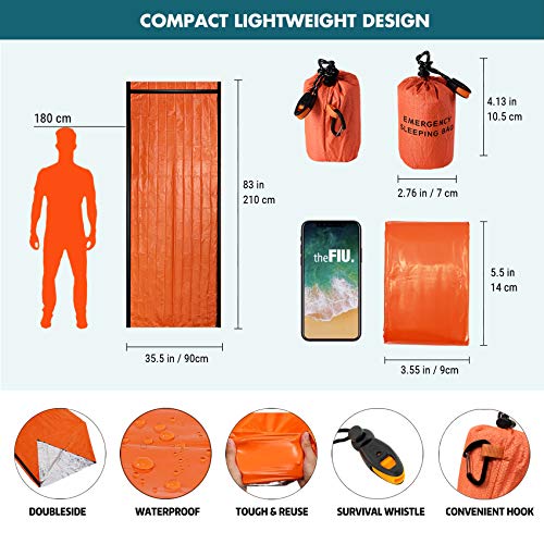 【First Aid】theFIU. Emergency double-sided sleeping bag can reflect light under any light source,color of one side is bright orange, another side is silver,bright colors, strong reflection, easier for rescue personnel to find, it will increase user's recuse chance. Please store it in a car, camper, boat or equipment bag for emergency use.