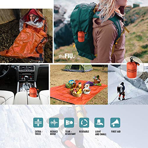 TheFIU. Emergency Survival Sleeping Bag, Bivvy Bag,Survival Gear Kit Thermal Blanket PE Aluminum Film for Outdoor Adventure,Camping,Hiking,and First Aids,Lightweight Waterproof Thermal Bag (Orange)