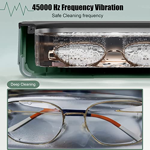Materiale premium e sicuro: questo dispositivo di pulizia degli occhiali utilizza un rivestimento in acciaio inossidabile 304, sicuro e pulito per toccare I tuoi oggetti. La parte inferiore del bagno ad ultrasuoni è dotata di una striscia di silicone per essere antiscivolo e ridurre il rumore. Non è necessario andare in un laboratorio di pulizia professionale, que