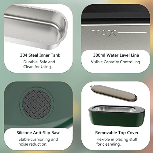 Thehomeuse THU Pulitore Ultrasuoni, 300ml Pulitore ad Ultrasuoni Professionale Lavatrice, Portatile Vasca Ultrasuoni Lavatrice, Pulizia Ultrasuoni per Protesi Orologi Gioielli Occhiali, Green527
