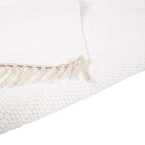 THEKO | Tappeto Dhurry in 100% cotone a tessitura piatta Tappeto Happy Cotton | Tessuto a mano | Colore: bianco | 160x320 cm