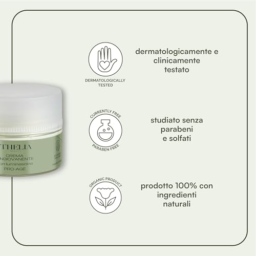 Thelia Beauty | Crema Ringiovanente Idratante Pro-Age con Luminescine, Olio di Ciliegia e Acido Ialuronico Prodotto Naturale Senza Parabeni, Dermatologicamente Testato, Made in Italy, 50 ml